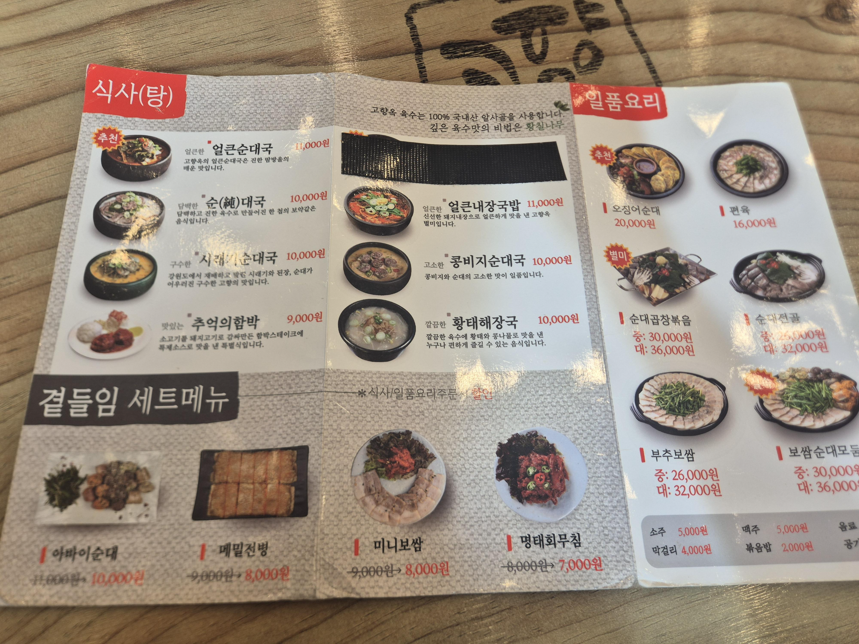 얼큰순대국이 기본 메뉴이고요. 일반 순대국과 시래기 순대국 등이 있습니다.