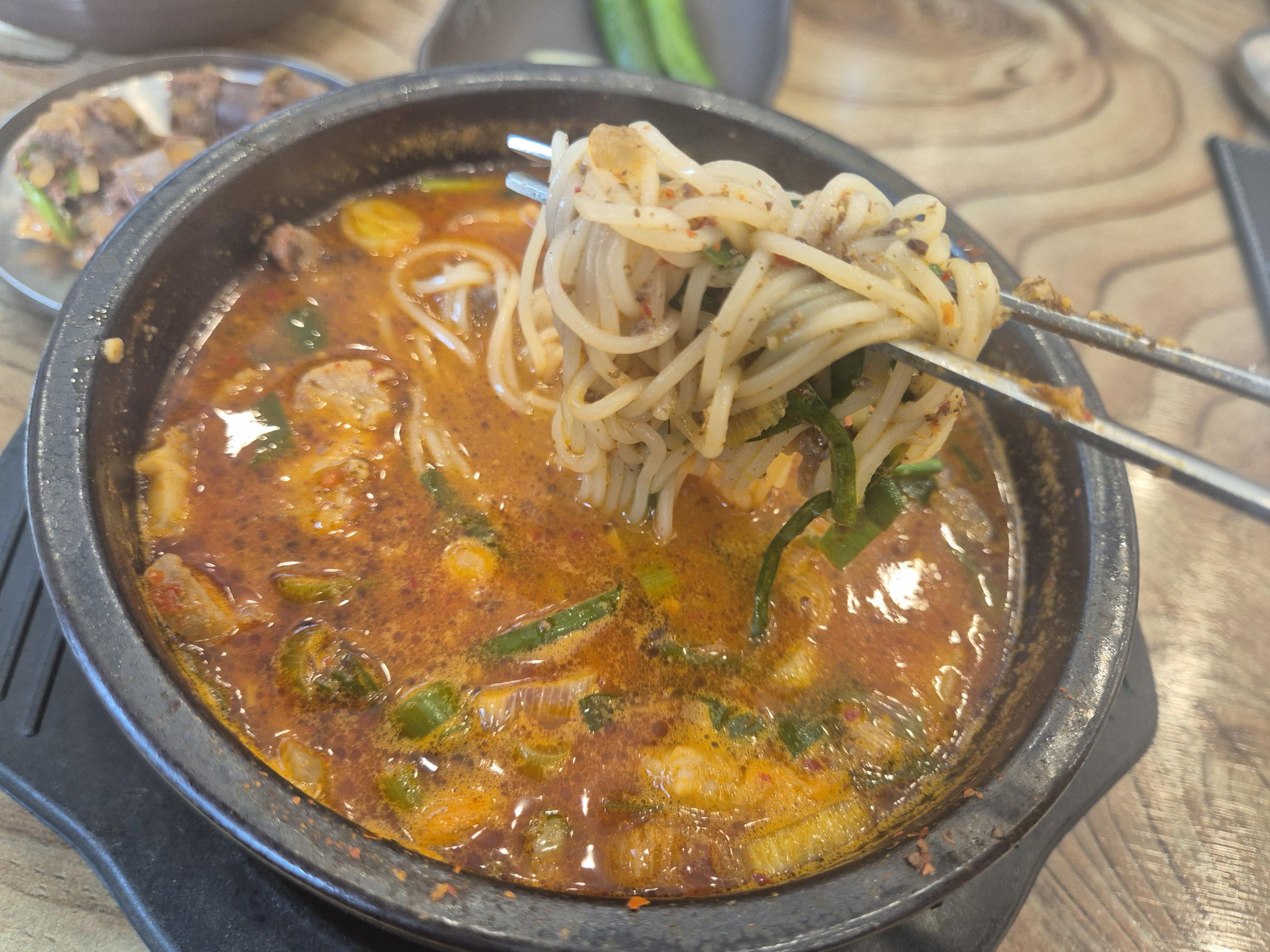 매콤한 순대국에 소면을 한가득 넣어서 후루룩.